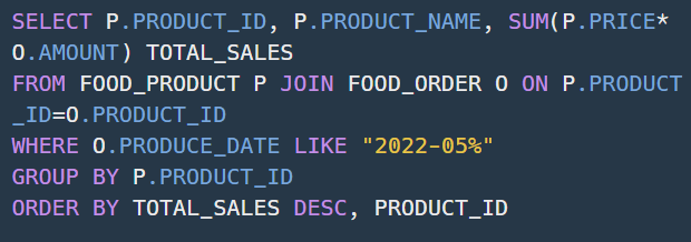 Q50 - 5월 식품들의 총매출 조회하기