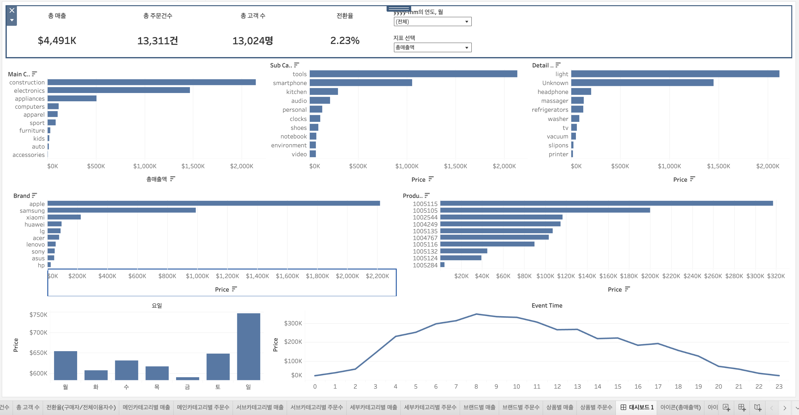 EDA 할때 이미 알고 있었지만, 대시보드 작업 시작하니까 더욱 뼈저리게 느껴진다.