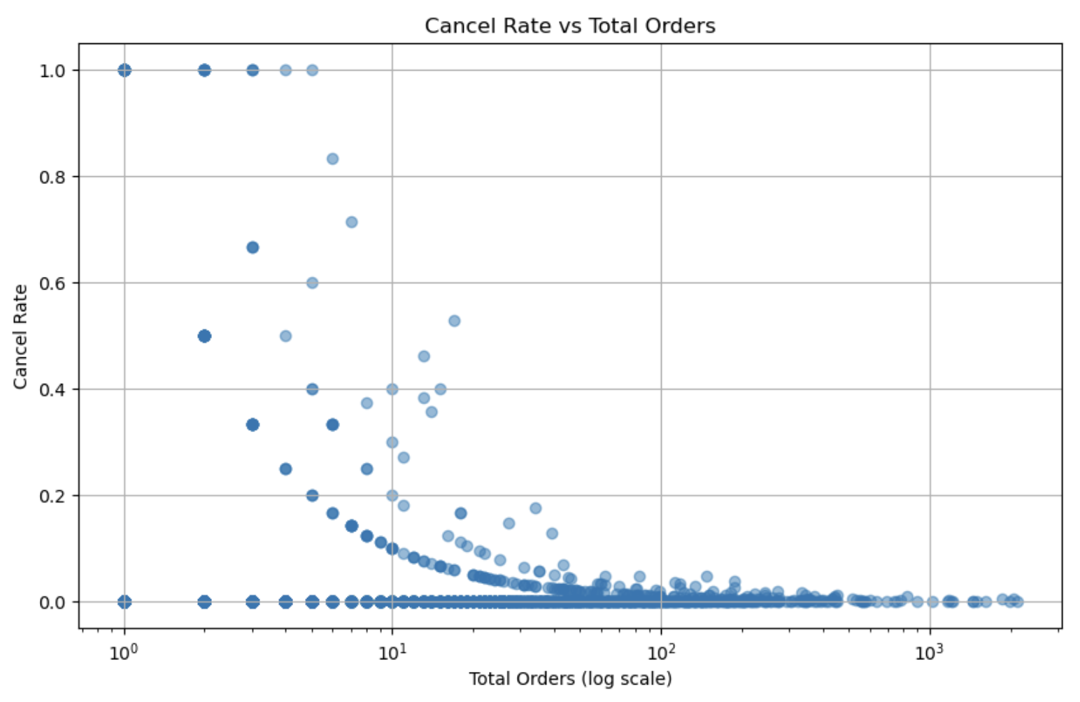 애초에 가장 취소가 많았던 경우가 고작 10회여서 취소율을 구하는 것 자체가 의미가 없다는 생각이 들었다.