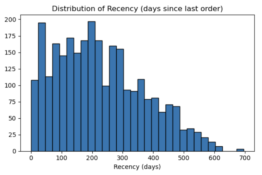 - 1년 가까이 재구매가 없는 고객도 꽤 존재하는데, 이 구간에서 이탈 리스크가 높을 것으로 예상됨"
