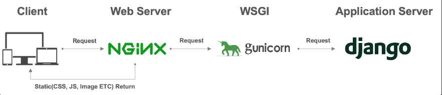 (대표적인 WSGI 서버로는 uWSGI, mod_wsgi, Gunicorn 등이 있다.)