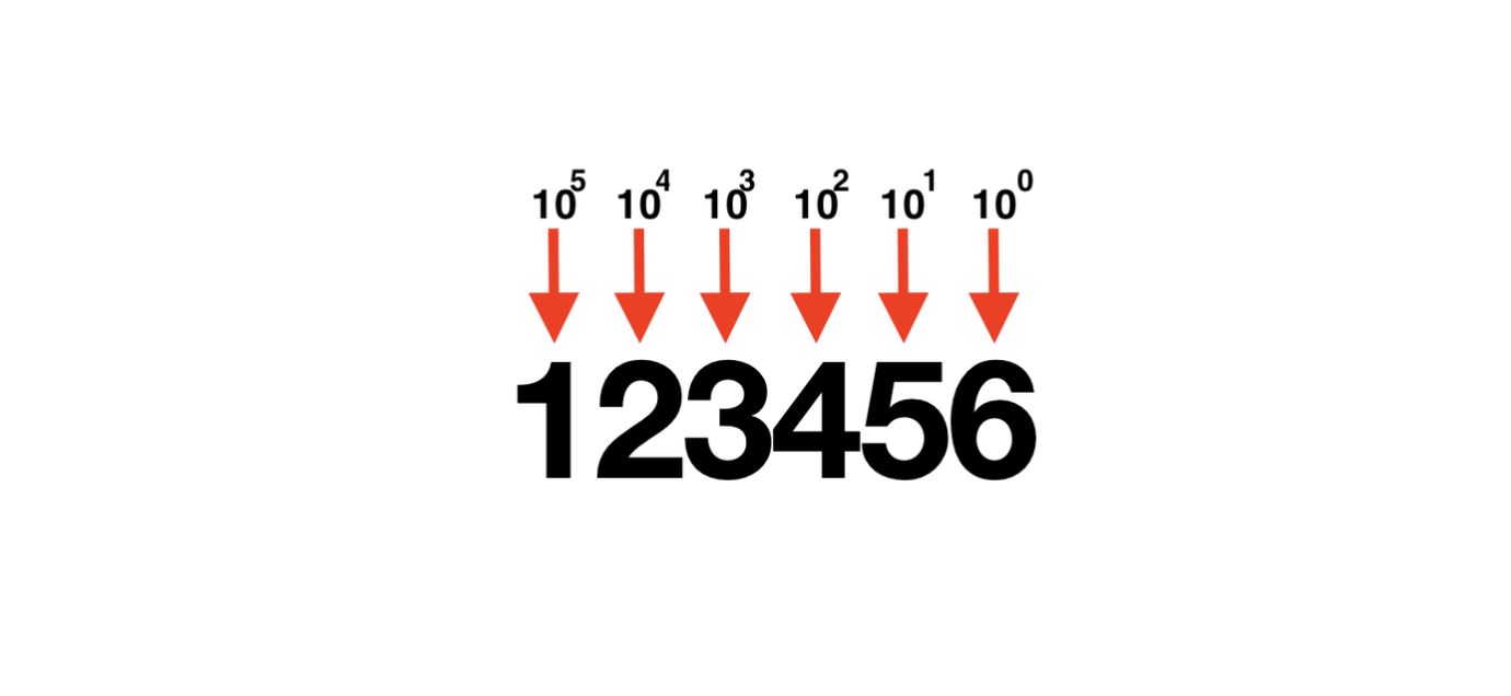 (1*10^5) + (2*10^4) + (3*10^3) + (4*10^2) + (5*10^1) + (6*10^0)