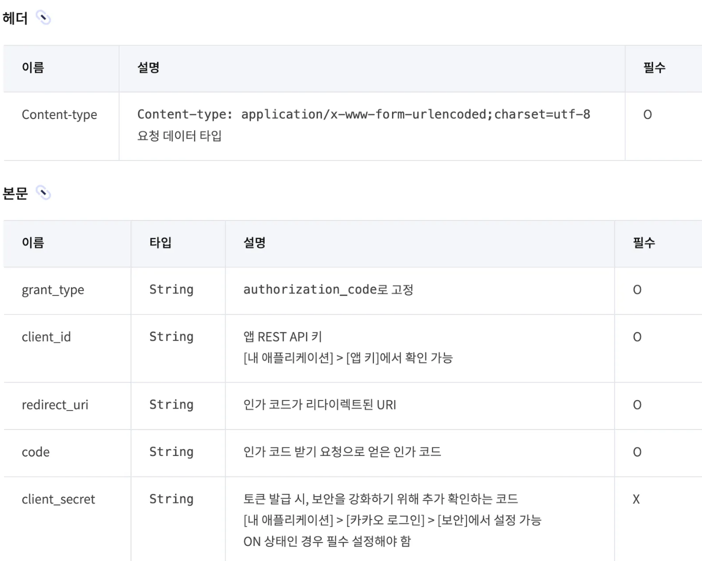 - 우선 카카오에 토큰을 발급해주는 API로 POST 요청을 보냅니다.