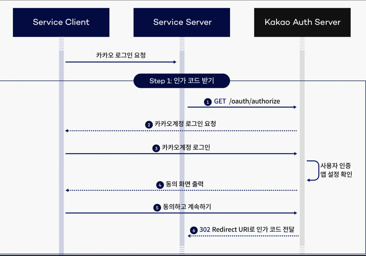- 이 과정을 통해 사용자는 카카오를 통해 인증과정을 거치고 백엔드 서버는 사용자의 인가 코드를 전달받습니다!