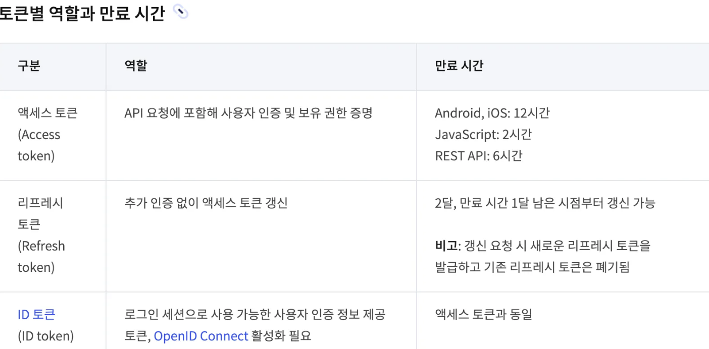 - 카카오 로그인에서는 액세스 토큰을 다음과 같이 설명하고 있습니다!