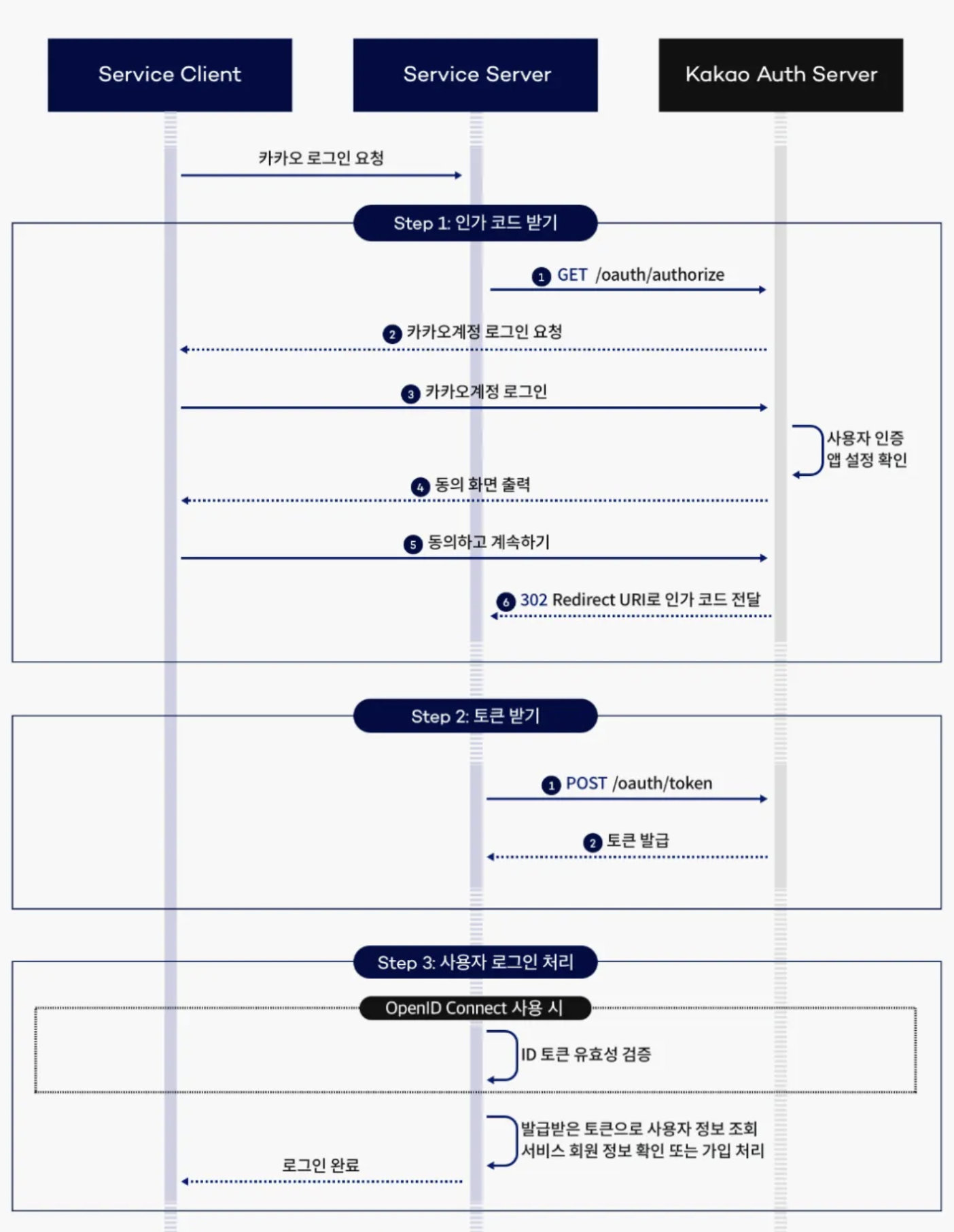 카카오 로그인의 큰 흐름은 다음의 세가지입니다.
