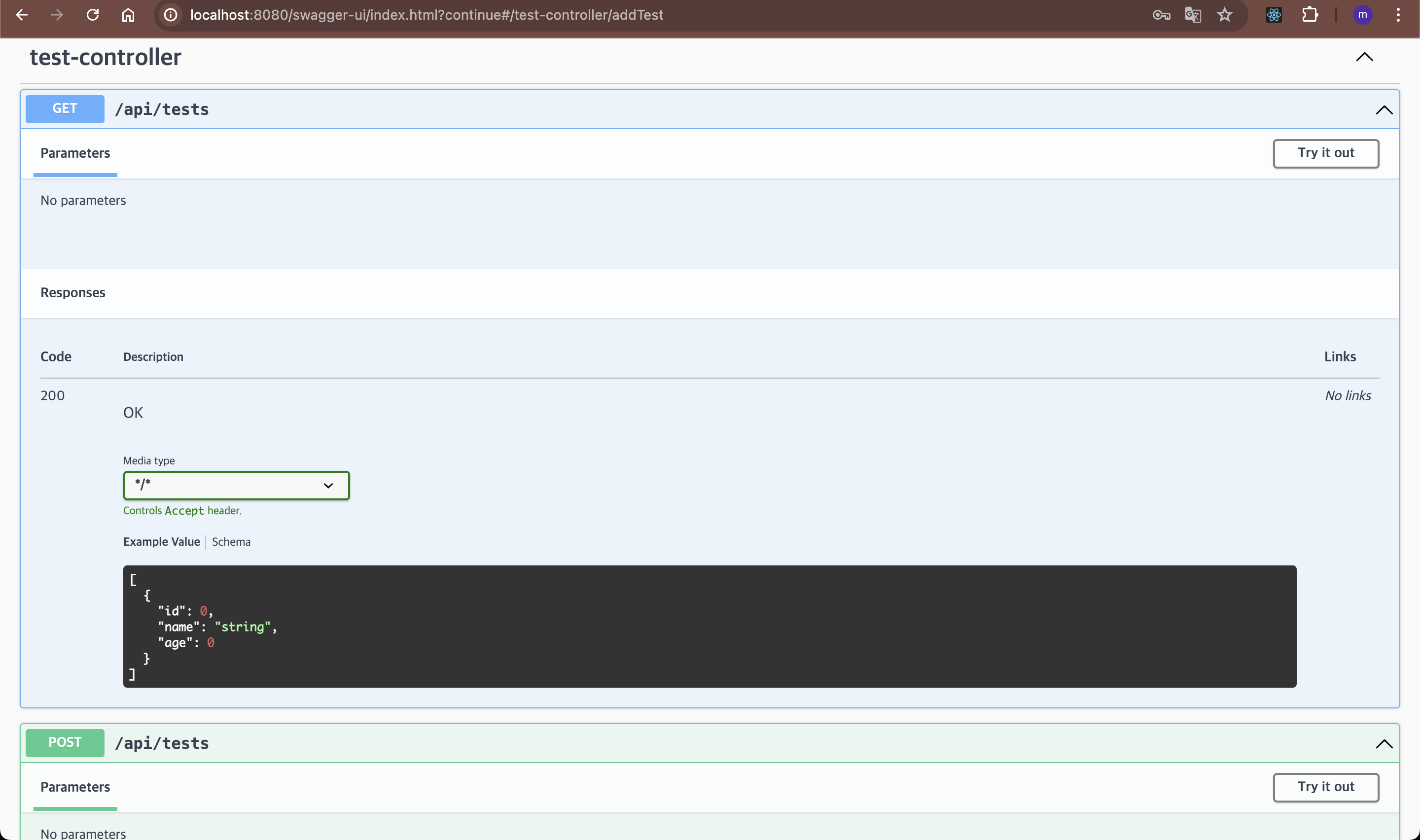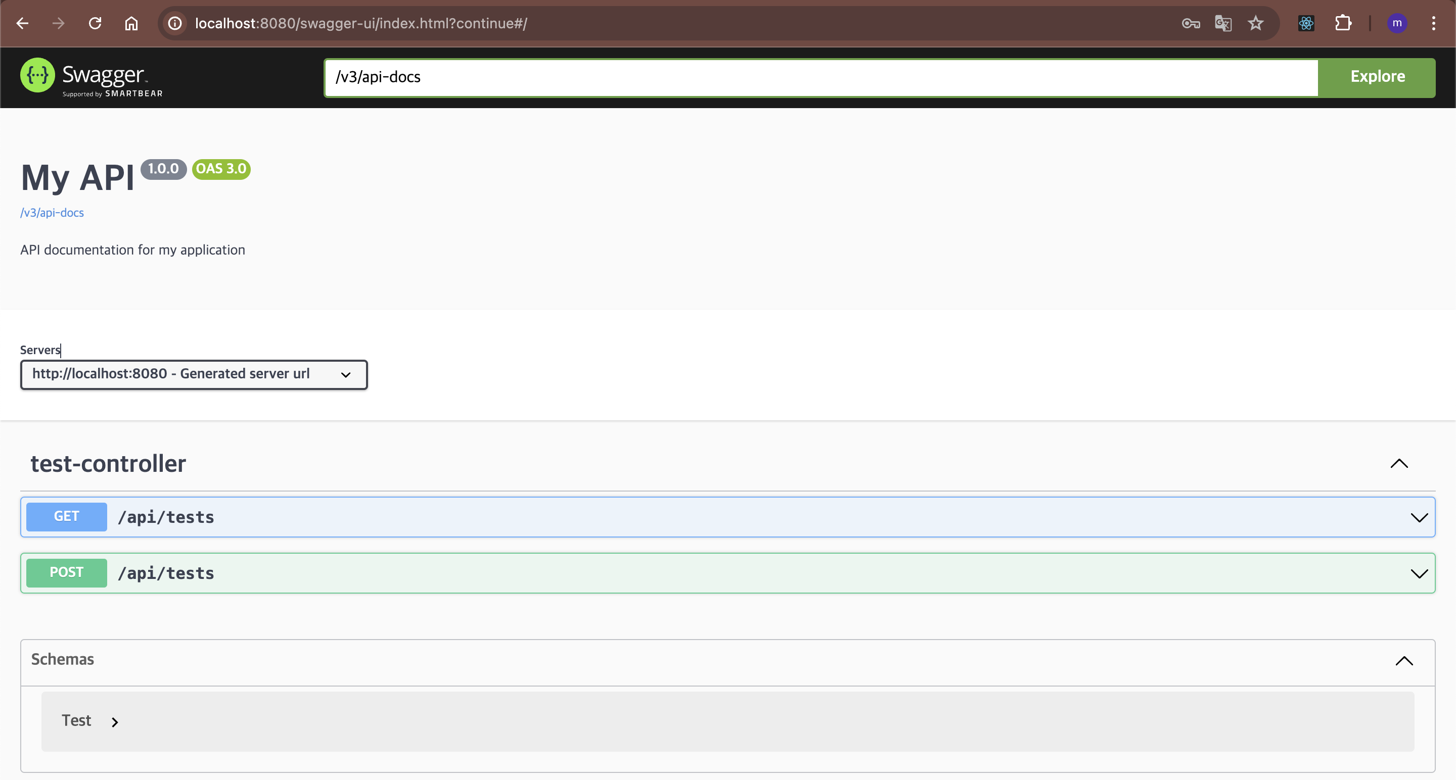 이제 애플리케이션을 실행하고 브라우저에서 Swagger UI에 접근할 수 있습니다.