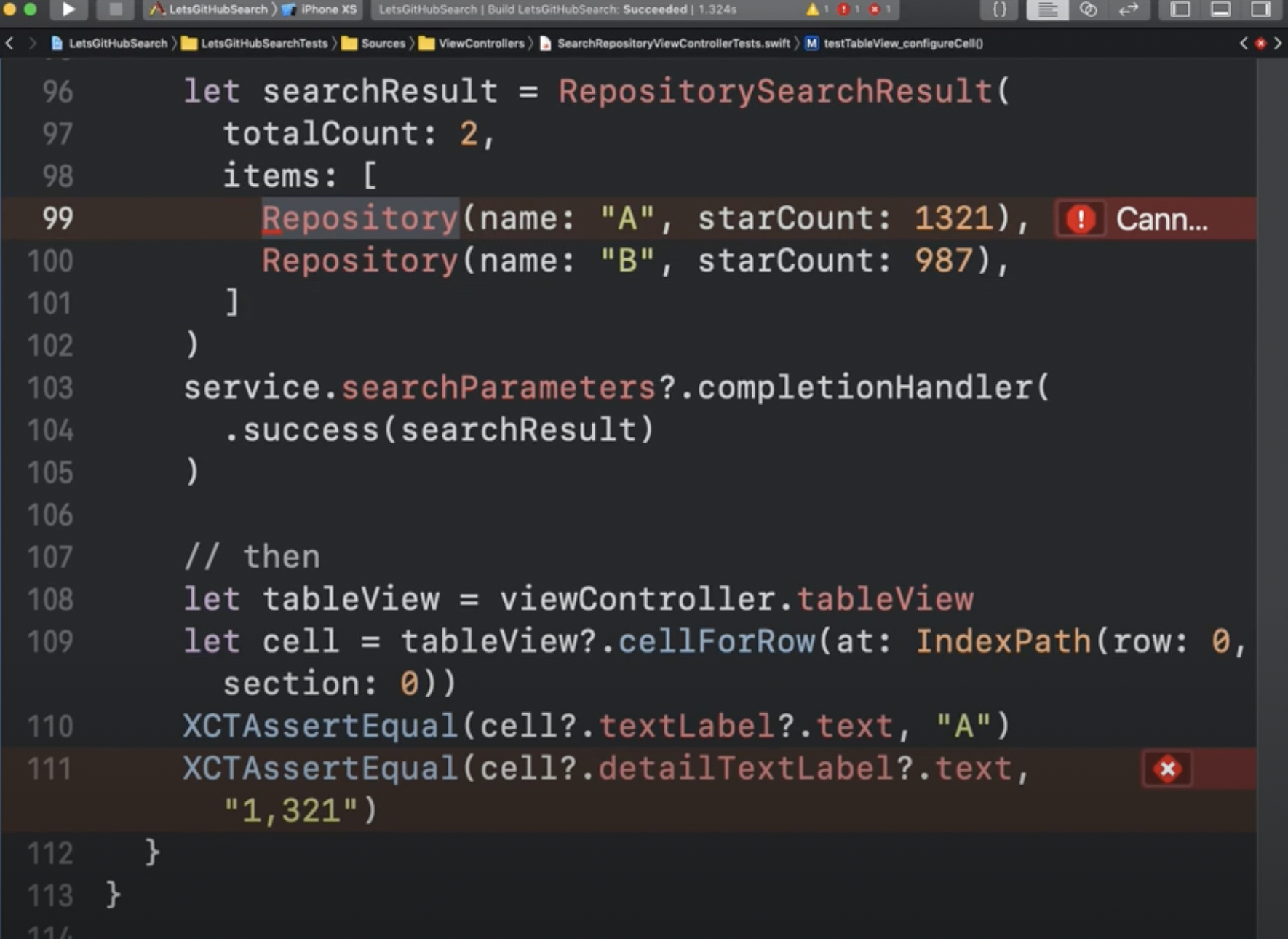 위의 코드는 cell의 detailTextLabel에 있는 text에 스타 개수가 321개인지를 검증하는 코드이다.