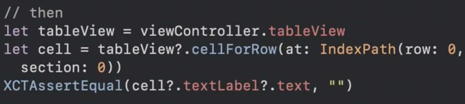 XCTAssertEqual(cell?.textLabel?.text, "")