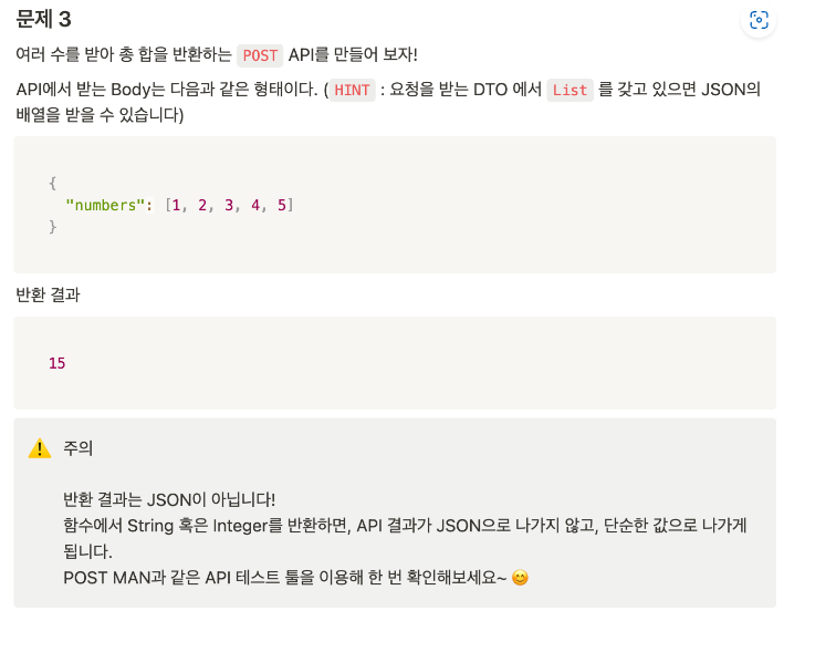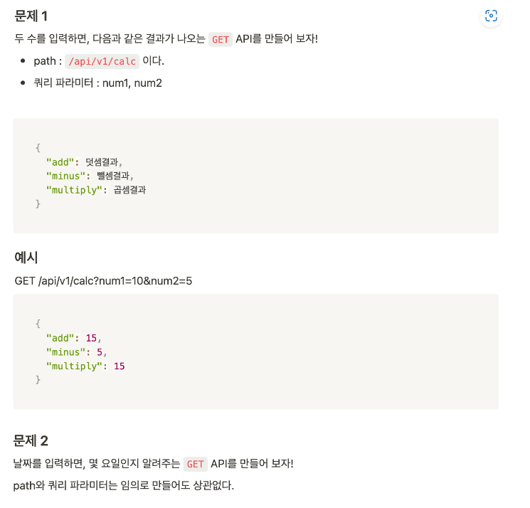 이 과제는 @GetMapping으로 (/api/v1/calc) 이런 url 요청이 들어오면 덧셈,곱셈,뺄셈을 json으로 응답으로 내보내는 과제이다.