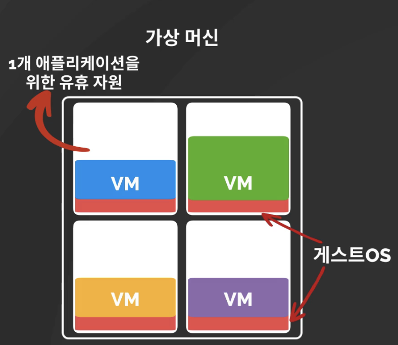 따라서 하나의 물리적 서버의 리소스를 각각의 OS에 할당해 효율적으로 사용할 수 있다.