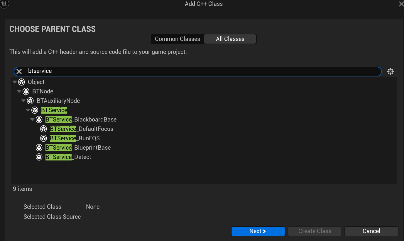 지속적으로 틱을 발생시켜 적을 탐색하는 Service노드를 만들고자 한다. TickNode() 함수를 오버라이드하여 사용한다.