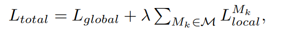 글로벌 및 로컬 관점에서 정상 비정상 프롬프트를 학습하는 방법은 global and local context optimization 이라고 한다. 다양한 객체의 이미지에 대한 글로벌 시각적 임베딩과 객체 비의존적 텍스트 임베딩을 일치시킨다. 이를 통해 글로벌 특징 관점에서 정상/이상 의미를 효과적으로 포착한다. M을 중간 레이어의 집합이라고 하면, 텍스트 프롬프트는 다음과 같은 전역적 손실 함수를 최소화하여 학습된다.