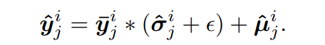 SAN은 정규화된 시퀀스를 예측모델에 넣고, 역정규화를 수행하여 예측 시퀀스의 비정상성을 복구한다. 이는 다음과 같이 수행된다.
