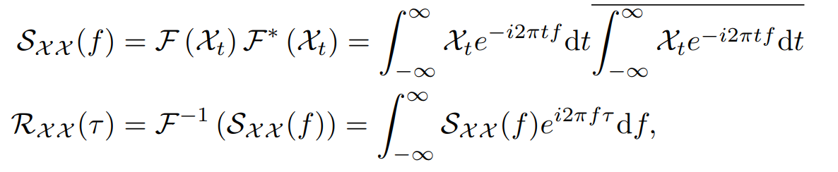 F는 FFT 연산을 의미하고, 스타는 conjugate operation으로, Sxx는 주파수 도메인 데이터를 의미한다. 시계열의 모든 lag 길이 1,2 ... L의 모든 autocorrelation은 FFT를 통해 한번에 연산이 가능하다.