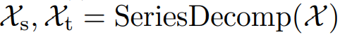 시계열을 trend와 seasonal part로 분해한다. 이 2개의 파트는 각각 롱텀 progression과 sesonality를 반영한다. 미래는 알지 못하기 때문에 이를 바로 분해할수는 없다. 따라서 series decomposition block을 제안한단. 이는 AutoFormer의 내부 연산을 의미한다. 구체적으로, periodic flucuations에 대해 smooth를 하는 moving average를 취해준다. L 길이의 시계열