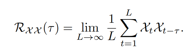 주기안의 같은 phase간에 비슷한 서브 프로세스를 보인다. 다음과 같이 이산 확률 과정에서 Autocorrelation은 다음과 같이 계산된다.