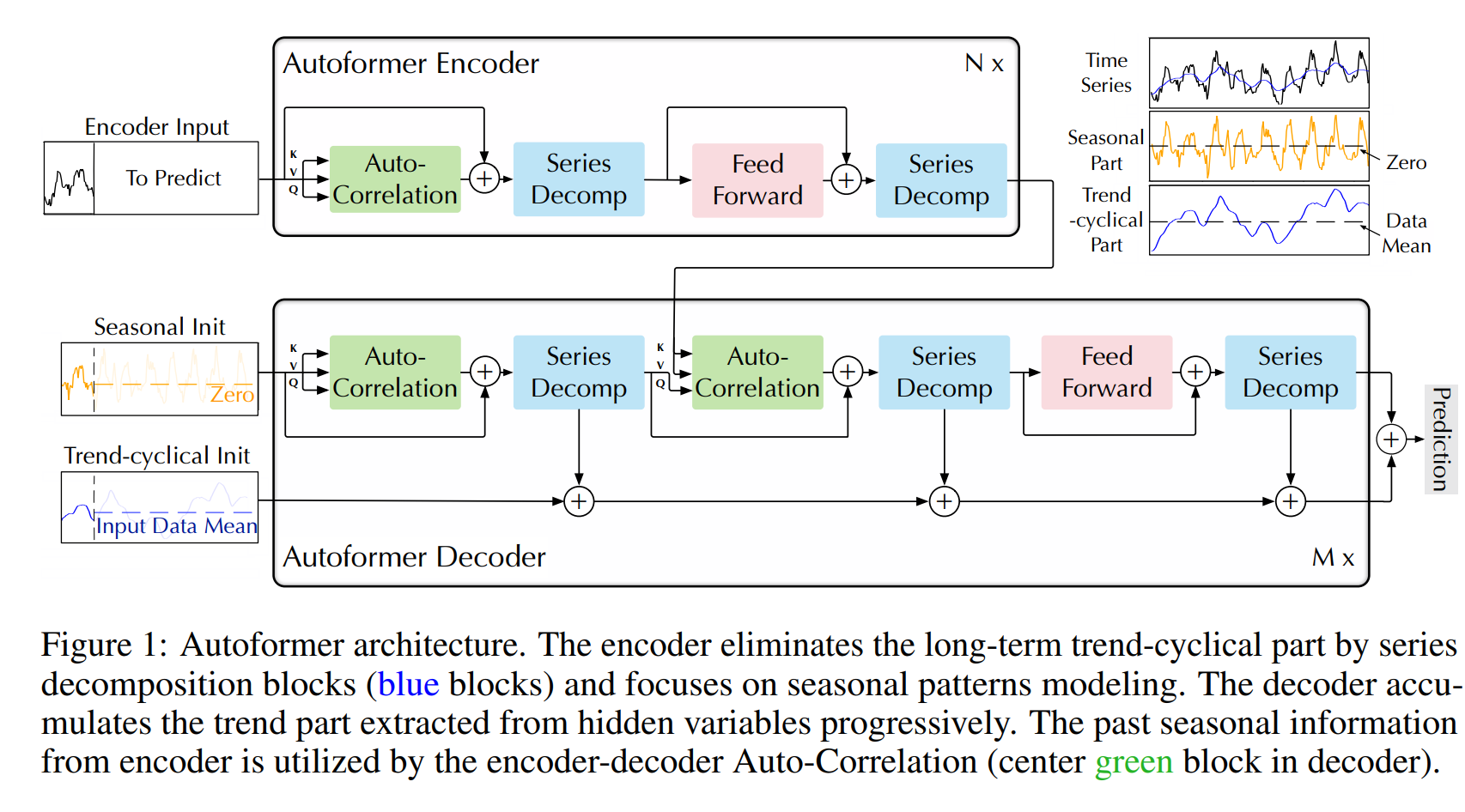 오토포머 디코더의 인풋에는 시즈널 파트와 트렌드 파트가 포함되어 있고, 이는 정제되어야 한다. 초기에는 2개의 파트로 나뉜다.