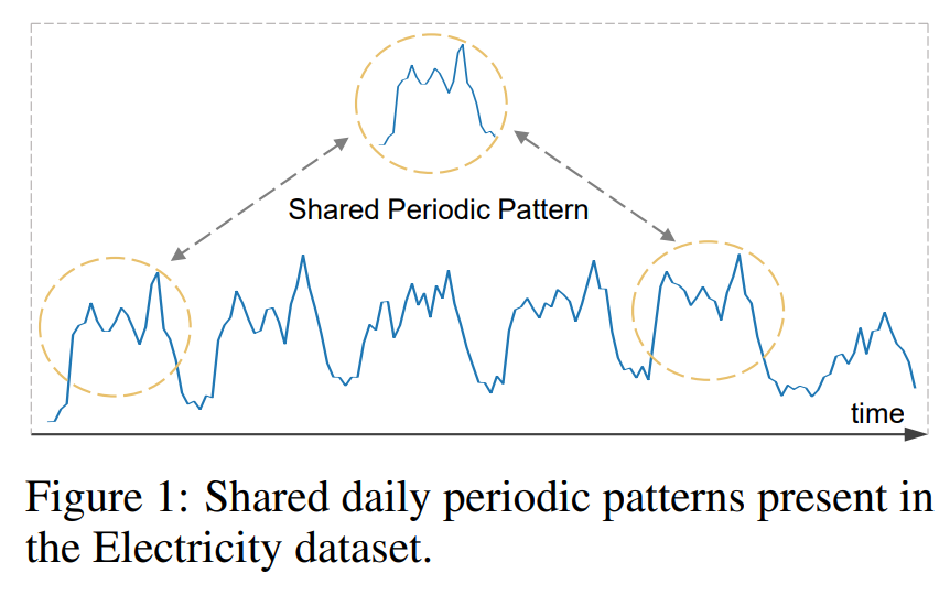 Fig 1. 에서 전기 데이터는 데일리한 주기적 패턴을 보인다. 글로벌하게 공유된 데일리 segment를 공유하며, 이를 주기적으로 N 타임 반복함으로써 지속적으로 사이클릭 컴포넌트에 대한 표현을 나타낼 수 있다.