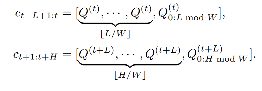 사이클 길이 W는 데이터셋의 특성에 의존하며, 데이터셋에서 가장 안정적인 사이클에 맞춰야 한다. 롱텀예측을 요구하는 태스크에서는 대게 prominent하고 명확한 사이클들을 요구하고, 특정 사이클 길이가 필요하다. 이러한 데이터셋의 사이클들은 ACF 를 통해 측정이 가능하다.