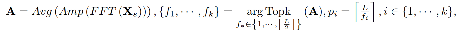 즉, 다변량 시계열에서 FFT 변환을 하고 amp만 추출한 뒤, 각 freq 값에 따라 평균을 한뒤 amp가 top K 만큼 큰 freq 찾는다. freq별로 다시 오름차순으로 재정렬하는것이다. 이때 p는 periodic length로 내림차순이 될 것이다. 왜냐면 freq는 오름차순인데, L/j 이므로 내림차순이 됨. 이것을 각 피라미드 레벨에 따라 파티션화 한 것이 Cl이고 이걸 레벨에 따라 모은게 최종 피라미드 P이다.