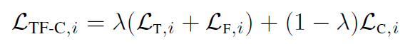 consistency loss item을 develop하였는데, 이것은 TF-C 임베딩을 만족한다. Time-based 와 Frequency-based frequency embedding은 각각 가까워지도록 한다. 임베딩 사이의 거리가 측정 가능하게, joint-frequency space 를 프로젝터 Rt와 Rf로 만든다.