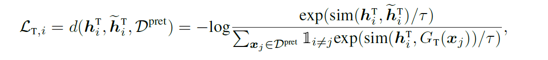 인풋 xi가 들어오면 augmentation을 생성한다. 이전에 구축되어진 augmentation bank를 통해 jittering, scaling, time-shifts, neighborhood segments 를 사용한다. augmented sample은 contrastive encoder에 들어가 positive pair와 negative pair를 정한다. 같은 데이터인데 augmentation이 진행된 경우 positive pair, 다른 시점에서 augmentation된 것은 negative pair가 된다. Contrastive time loss는 negative pair의 similarity를 줄이고, positive pair의 similarity를 높인다. 이는 NT-Xent를 도입하여 다음과 같은 식이 산출된다.