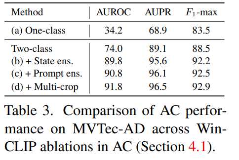 1. 단순한 CLIP 기반 제로샷 분류보다 제로샷 이상 분류를 개선하는 프롬프트 앙상블을 제안한다.