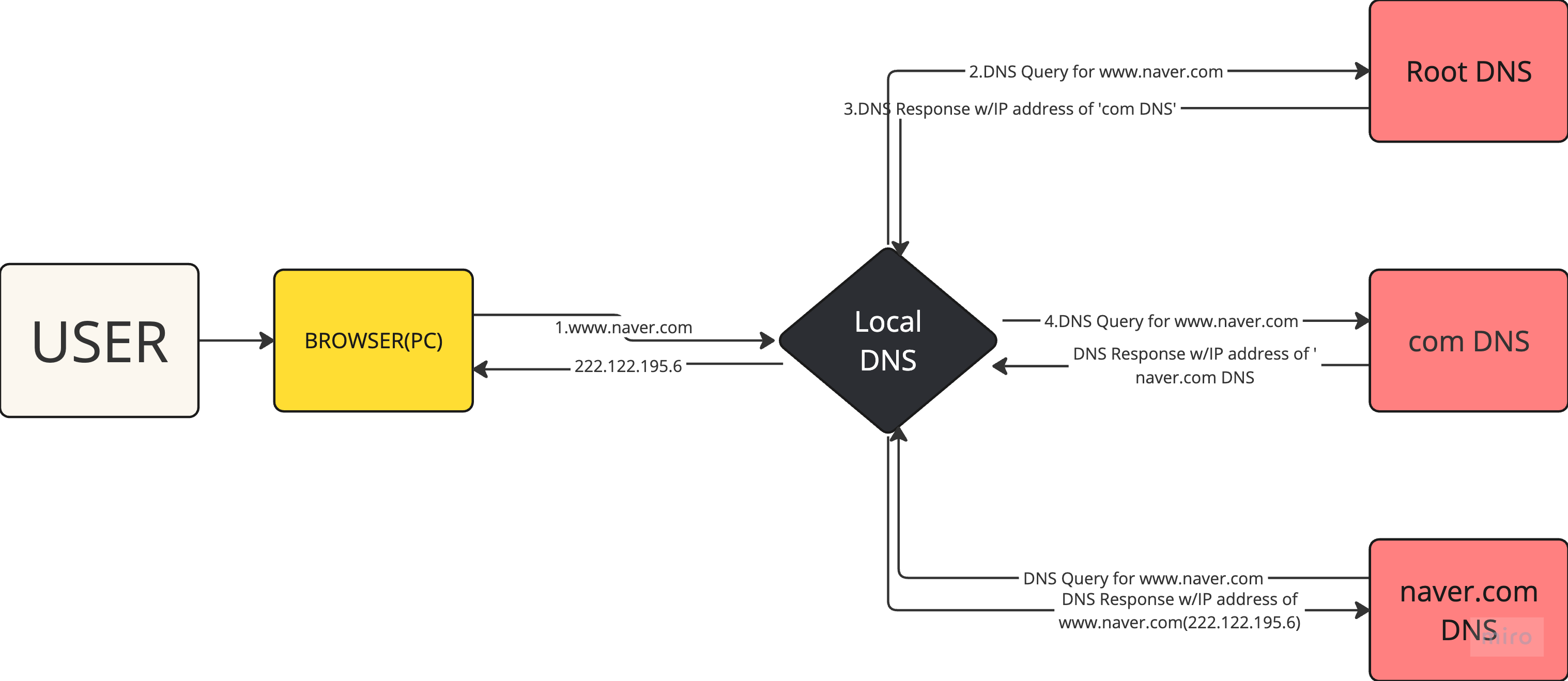 즉 DNS 문자열 구조에서 뒤에서부터 해당 계층의 DNS server을 콜백해 해당 ip 주소를 찾습니다.