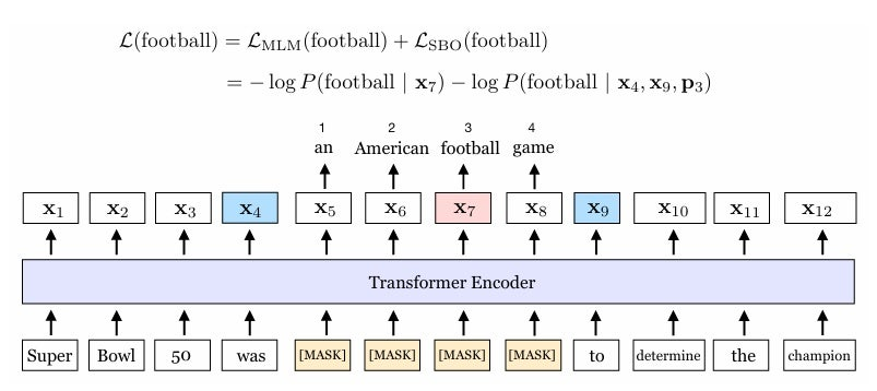 span 경계 목적 함수(span-boundary objective, SBO): 마스킹된 span의 경계 정보를 활용하여 전체 span을 예측하도록 학습한다.