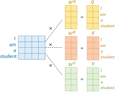 - ๊ธฐ์กด Self-Attention๊ณผ ๋์ผํ๊ฒ Query, Key, Value ์์ฑ