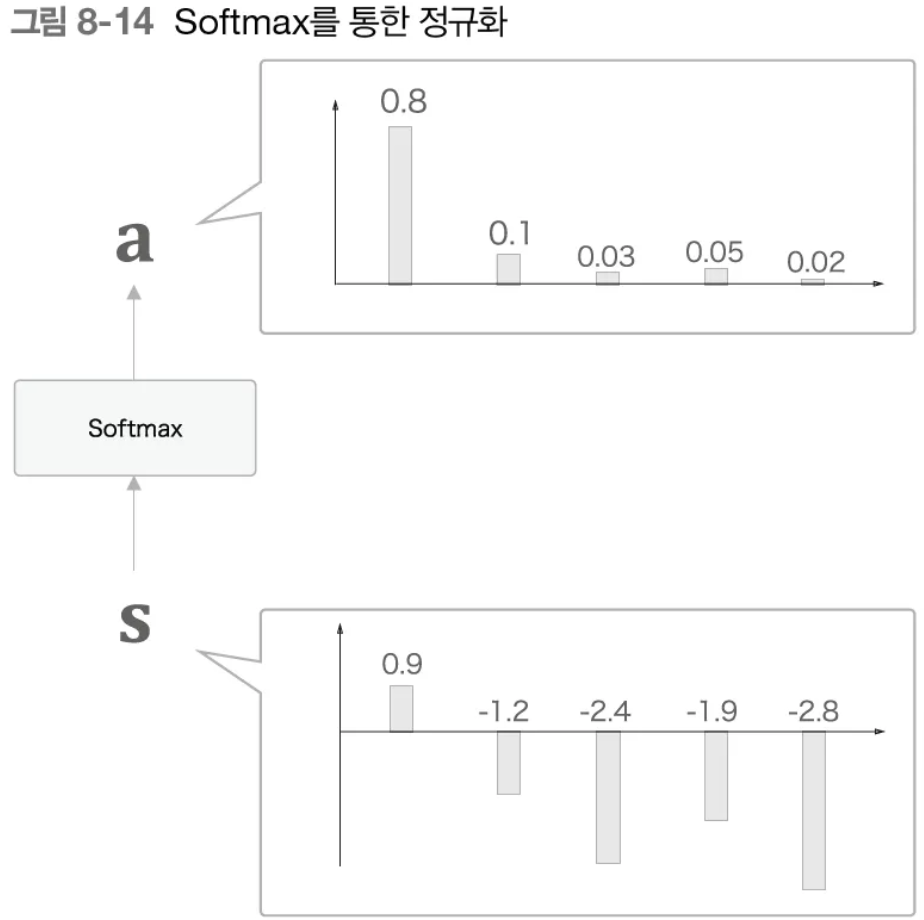 - Softmax๋ฅผ ์ ์ฉํ์ฌ ๊ฐ์ค์น(ํ๋ฅ )๋ก ๋ณํ