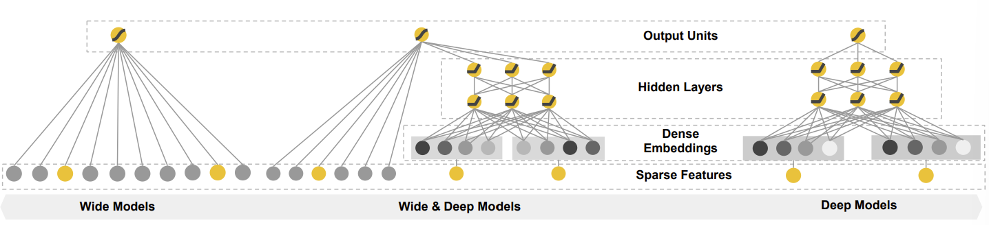 - Wide models (선형 모델) : memorization에는 강하지만, 새로운 상황에 일반화가 어려움