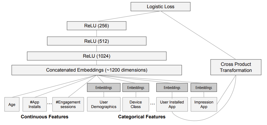Wide 파트는 사용자가 설치한 앱과 현재 impression 앱 간의 cross-product transformation
