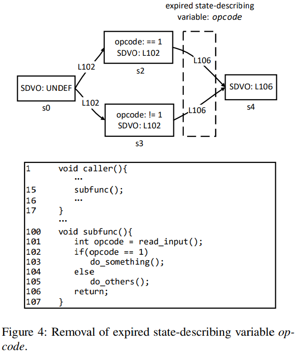 본 논문에서는 saved_size를 상태 설명 변수(state-describing variable)로 부르고, 이처럼 변수에 의존하는 데이터 종속적 조건문에 의해 보호되는 분기를 상태 종속적 분기(state-dependent branches) 라고 한다.