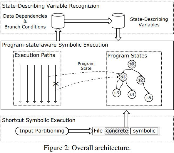 예를 들어, S2E는 자동 bidirectional 심볼릭-concrete 상태 변환을 제안하여, 실행을 심볼릭 모드와 콘크리트 모드 간에 매끄럽고 정확하게 오갈 수 있다. 이 논문에서는 선행하는 콘크리트 실행과 후속하는 심볼릭 실행을 혼합한 shortcut 심볼릭 실행을 제안한다.
