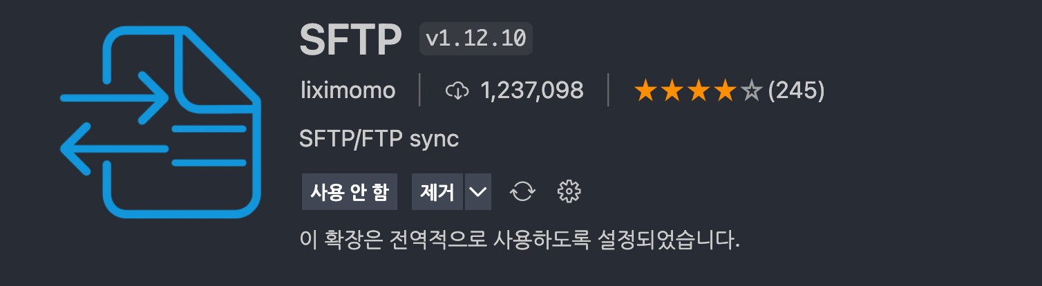 로컬 디렉토리와 원격 디렉토리를 동기화 시켜주는 SFTP extension을 설치한다.