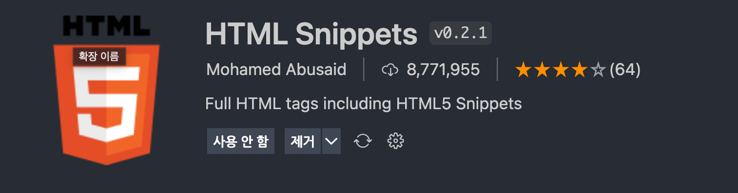 자동으로 html 태그를 입력해주는 HTML Snippets을 설치한다.