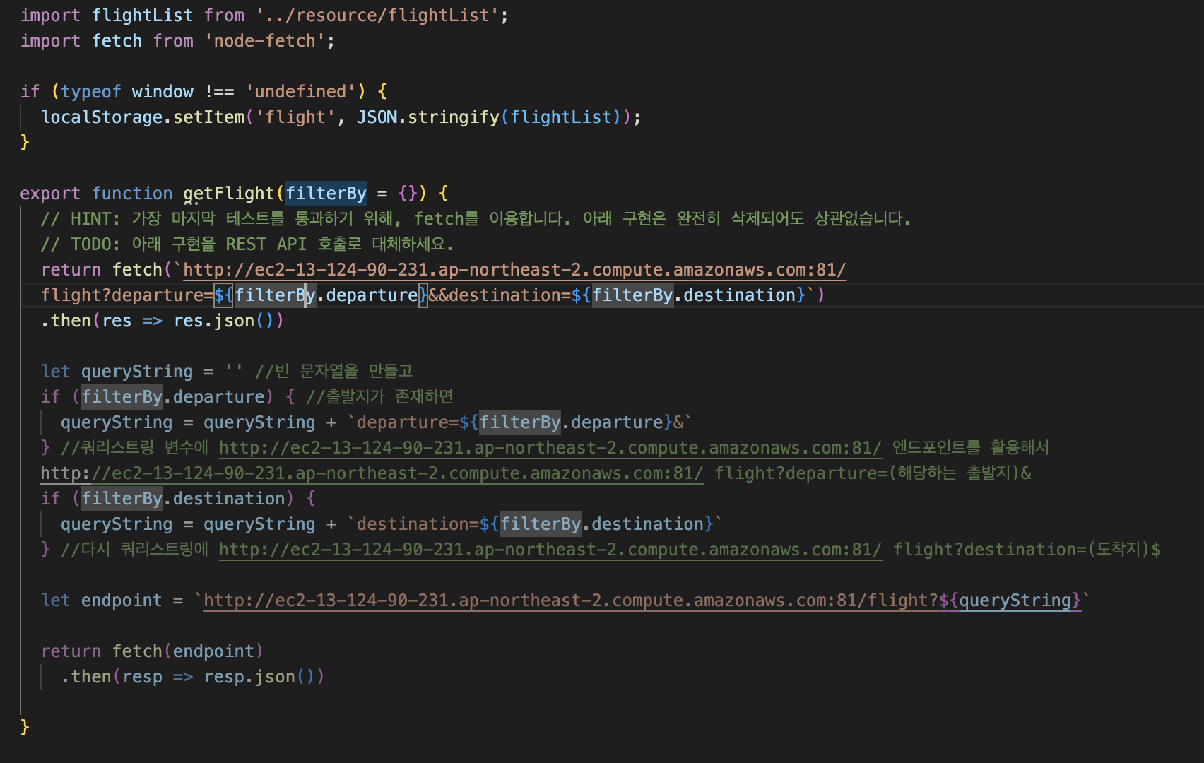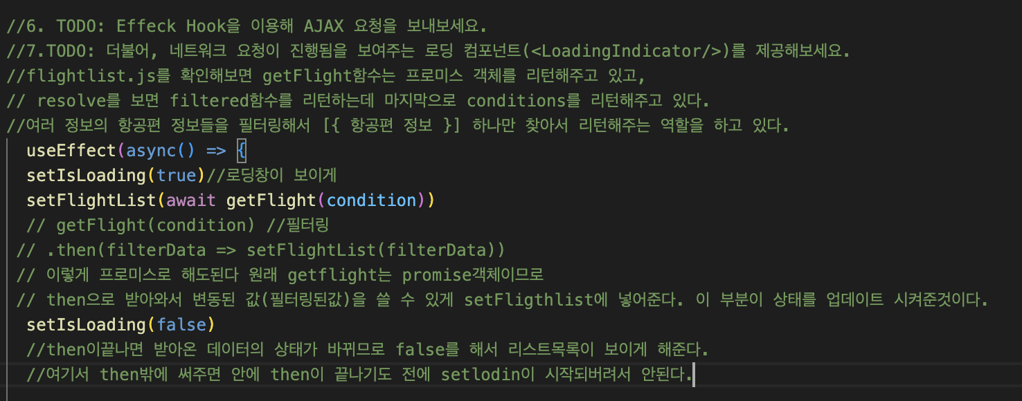 우선 프로미스 객체인 것을 알게됨->프로미스는? 비동기이다 ->이 getflight안에는 필터를 해주는 함수가 있다->그러므로 then으로 필터된 값을 받아오고 그값을 getflight를 setflight list에 넣어주는 것이다