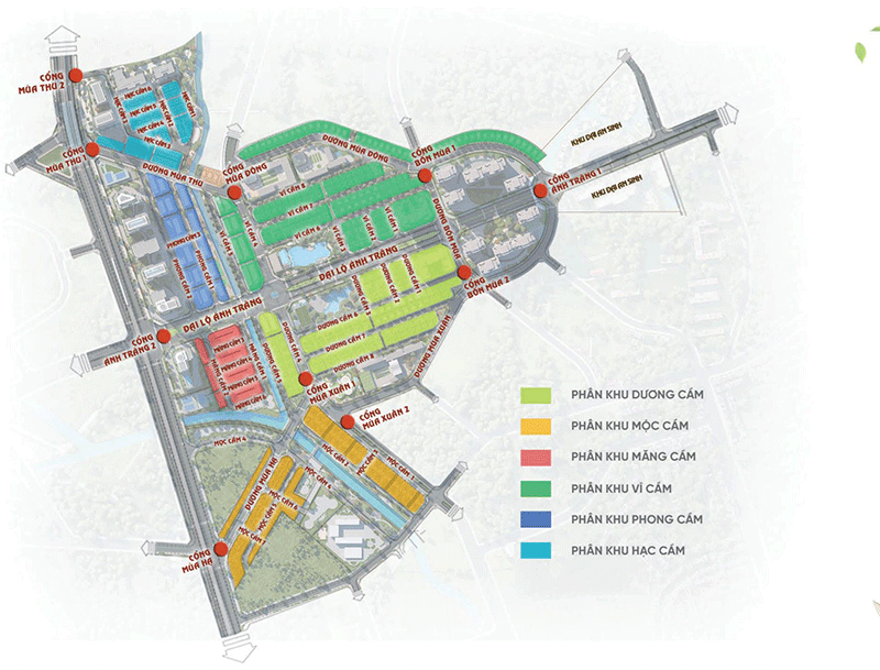 Dòng sản phẩm: Biệt thự song lập; Biệt thự đơn lập; Nhà liền kề; Shophouse; Nhà vườn và Chung cư.