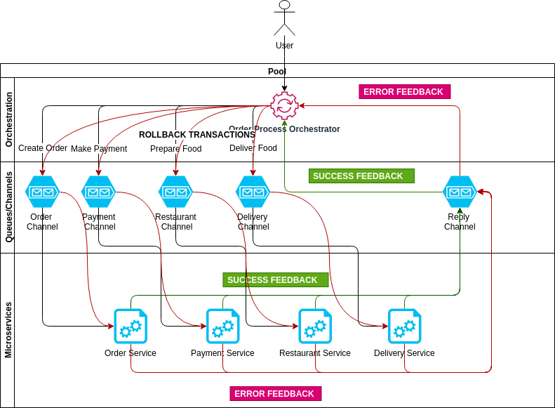 중앙 Saga Coordinator가 모든 단계를 명령/지휘.