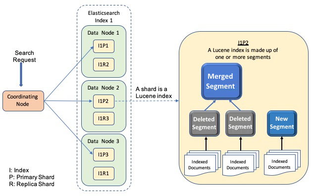 - 세그먼트(Segment): Lucene 인덱스 내부의 데이터 저장 단위. 불변(Immutable) 특성을 가져 쓰기 성능, 병렬 검색, 캐싱에 유리합니다. (Insert는 새 세그먼트에, Update/Delete는 Soft Delete 후 Merge 시 실제 처리)