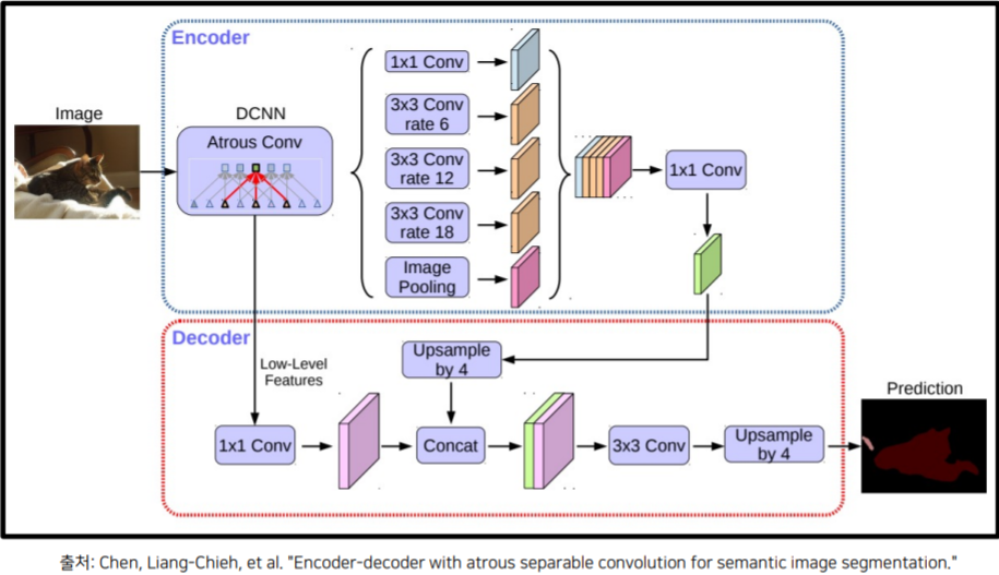 - Atrous separable convolution을 적용한 ASPP모듈 사용