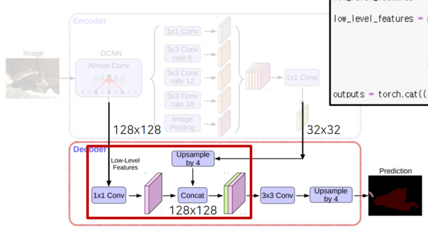 - ASPP에서 나온 map은 32x32 -> upsample x4
