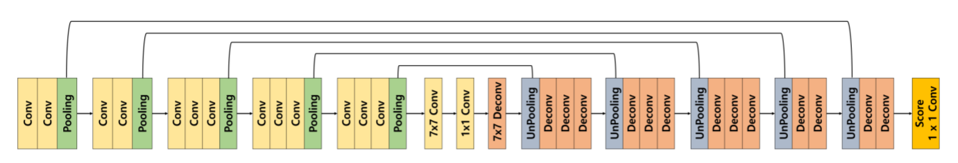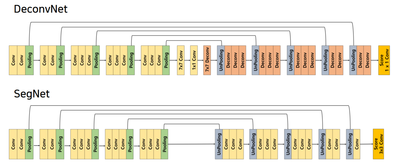 -> FCN에 비해서 디코더가 unpooling과 deconv로 더욱 풍성해짐