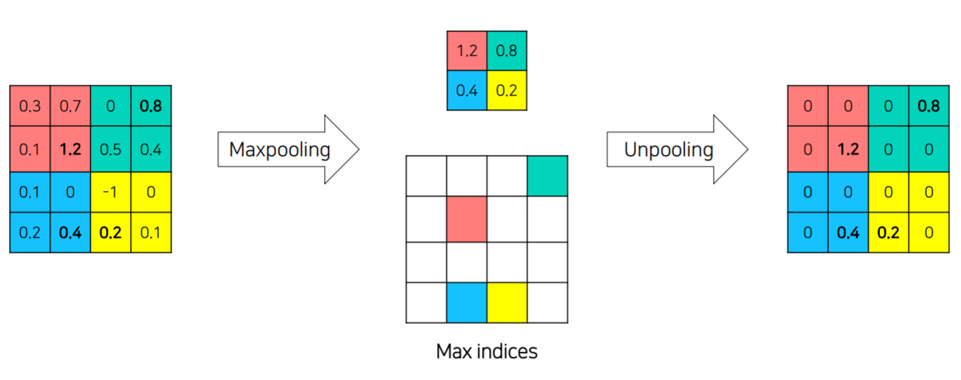 max pooling을 할때 max값이 있었던 위치정보를 기억해둔후 복원하는 것이다.