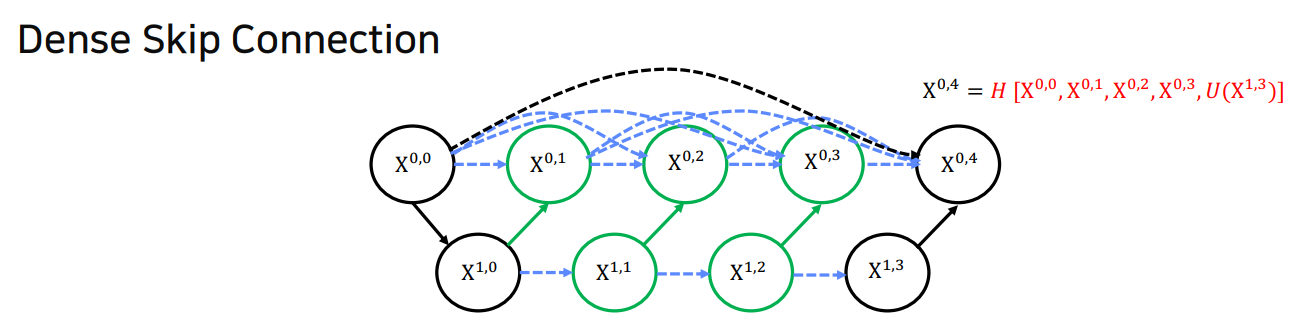 - concat위해 앞단의 정보 저장 -> 메모리 증가