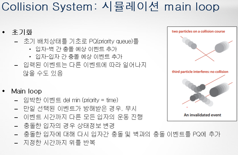N 개의 움직이는 입자의 행동을 탄성충돌법칙에 따라 시뮬레이션