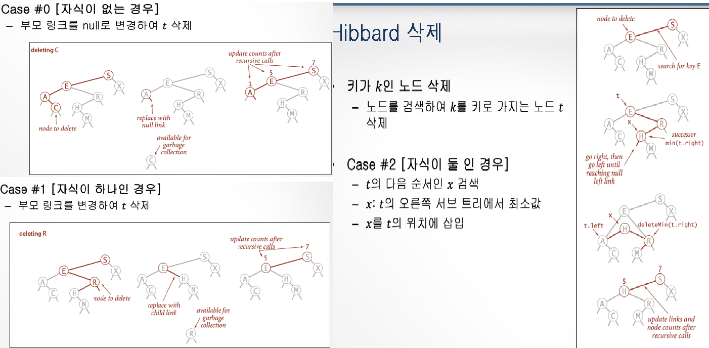 ↳ 키끼리 comparable, Immutable as possible- BST에서 히바드 삭제 시 높이가 log N에서 루트 N으로 증가