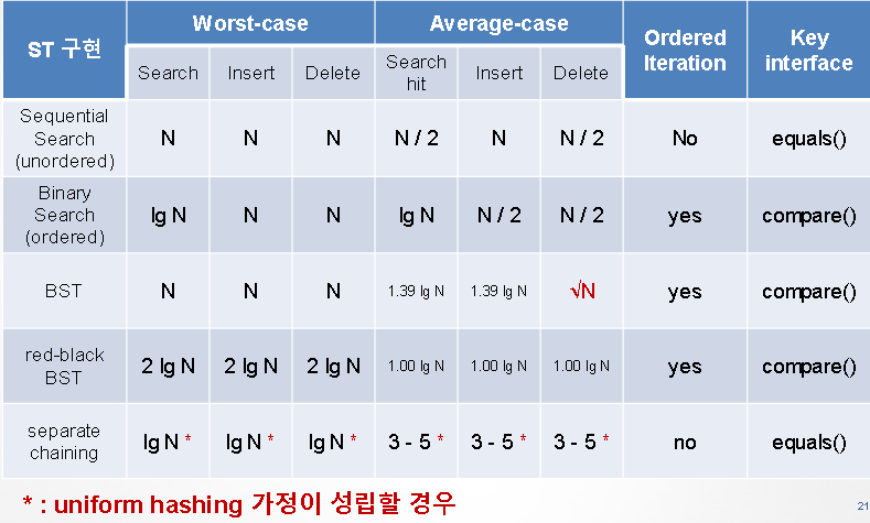 ↳ BST에 N개 키 무작위 추가 → 삽입, 탐색위한 비교횟수 ~2 ln N